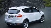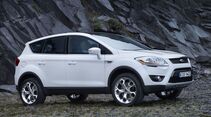 Zum Markstart gibt es den Ford Kuga mit einem 1,6-Liter-Ecoboost (150 und 182 PS) sowie einem Zweiliter-Diesel (140 und 163 PS). Die beiden stärkeren Leistungsstufen geben ihre Kraft jeweils an alle vier Räder weiter.