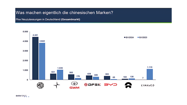 Hier ist MG mit Abstand die volumenstärkste Marke. Insgesamt verkaufte der Hersteller 4.441 Fahrzeuge auf dem Gesamtmarkt. Dabei wird es nicht bleiben, so Gergen, der mit dem neuen MG3 weitere Zuwächse erwartet. Mit deutlichem Abstand folgen Polestar (631 Einheiten) und GWM (563 Einheiten).