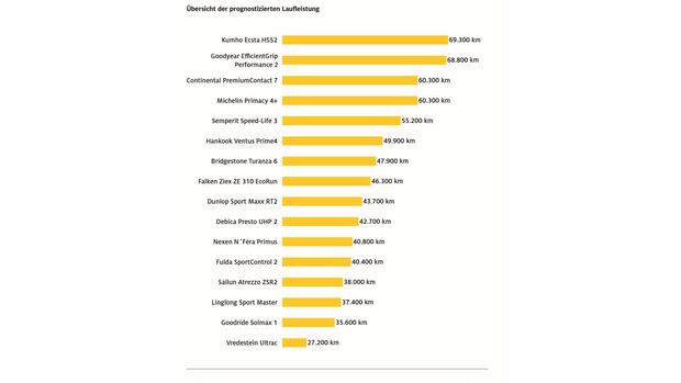 In Sachen Laufleistung überzeugen alle drei – sie schaffen deutlich mehr als 60.000 Kilometer, der Koreaner sogar knapp 70.000 Kilometer. Dass das Schlusslicht Vredestein nicht einmal 40 Prozent dieser Laufleistung schafft, ist nicht nur wirtschaftlich, sondern auch ökologisch inakzeptabel. Trotz der guten Fahrsicherheit schlägt die Bewertung der Laufleistung auf die Gesamtnote durch. Er kann jedoch für Wenigfahrer eine gute Alternative sein.