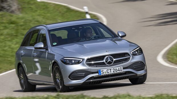 Aus dem Drehzahlkeller schiebt er souverän ohne Schaltvorgänge der Neungangautomatik an. Beim Ausrollen vor einer Ampel kommt es mitunter zu minimalen Rucken. Die verleiten den Fahrer, den Fuß leicht zu bewegen, was bei der Bremspedalabstimmung genügt, um die Bremsung ordentlich zu verstärken. Wie gesagt: Das kriegt man unter Kontrolle. Beim Fahren zeigt der C einen gekonnten Mix aus Tempo und Gelassenheit. Auf Dynamiker macht der etwas intensiver wankende 300 d nie. Außerdem gibt es diesen Motor weder mit Allradantrieb noch Sperrdifferenzial. Dafür passt die Komfortlenkung super. Sie filtert Straßenschäden effizient und gibt gleichzeitig wichtige Infos über den Straßenzustand deutlich weiter. Ein Sport-ESP lässt sich im Assistenzmenü aktivieren, das sich jedoch oft als Spielverderber erweist – etwa auf einem Flickenteppich in spitzen Kurven.