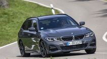 Ganz anders der 330d Touring mit M-Sportpaket, der in solchen Situationen das Heck leicht raushängt, den Aufbau per Adaptivdämpfern stramm hält und sich per xDrive sicher und wuchtig rauszieht. Die Lenkung versteht sich als Berichterstatterin mit Detailanspruch, lenkt aus der Mittellage spitz an, erlaubt sich vereinzelt aber auch mal etwas Synthetik im Lenkgefühl.