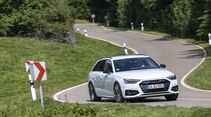 Beides vermisst man im A4 weniger als ein zusätzliches Fach unter dem Ladeboden, denn dort wohnt die 48-Volt-Hardware. Außerdem geht es im Fond etwas enger zu. Fernentriegelung, Sonnenschutzrollos und eine elektrisch betätigte Ladeabdeckung hat er hingegen.