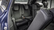 Der fast 4,70 Meter lange E-SUV ist darüber hinaus geräumig und variabel. Vorne finden selbst großgewachsene Gäste eine gute Sitzposition. Reihe zwei ist dank der Batterie im Unterboden allerdings etwas höher als etwa beim GLB positioniert, was die Luft nach oben beschneidet. Wer über 1,80 Meter ist, kommt dem durchs Glasschiebedach leicht abgesenkten Dachhimmel jedenfalls verdächtig nahe. Einen Ausflug in die optional verfügbare dritte Sitzreihe ist eher was für Kindern. Immerhin handelt es sich um vollwertige Sitze. Die Lehnen aller Fondsitze sind einzeln umklappbar. Je nach Bedarf kann man die Konfigurationen auf die Gepäckmenge oder die Fahrgäste flexibel anpassen. Über 1.700 Liter lassen sich maximal durch die große Hecköffnung einladen. Beeindruckend ist zudem die Solidität der Klapp- und Schiebemechanik. Anders als bei vielen Vans oder Hochdachkombis wackelt und scheppert nichts.