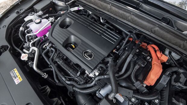 Eine weitere Neuheit sitzt unter der Motorhaube: der erste aufgeladene Vollhybridmotor der Marke. Der 500h mit 272 PS starkem und 2,4 Liter großem Turbobenziner sowie zwei E-Motoren kommt auf eine Systemleistung von 371 PS. Er soll in Deutschland über 60 Prozent der Verkäufe ausmachen. Zwischen Verbrenner und Getriebe sitzt ein 87 PS starker E-Motor und treibt die Vorderräder an. Zusätzlich leitet der hintere E-Motor bei Bedarf bis zu 103 PS an die Hinterräder und sorgt für Grip auf rutschiger Straße.