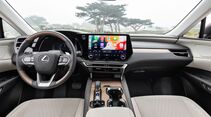 Etwas günstiger wird Lexus den RX 450h+ anbieten. Der Plug-in-Hybride nutzt die gleiche Technik wie der erste Steckdosen-Benziner der Marke, der NX 450h+. Allerdings wurde der 309 PS starke Antrieb sportlicher abgestimmt. Sein 18,1 kWh großer Akku soll für rund 65 Kilometer gut sein, die elektrische Höchstgeschwindigkeit liegt bei 130 km/h. Laden lässt sich der Akku ausschließlich mit Wechselstrom. Über den 6,6 kW starken Bordlader dauert das rund drei Stunden. Anders als Audi, BMW oder Mercedes nutzt Lexus aber noch keine GPS-Daten für die Motorsteuerung. Die Konkurrenz-Modelle denken mit, sparen bei aktivierter Navigation automatisch Strom auf, wenn die Fahrt am Ende in eine Umweltzone führt.