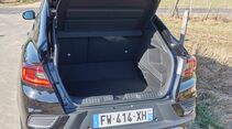 Der Arkana kann aber mehr als nur hübsch aussehen. Innen kombinieren die Designer den aufrecht stehenden Bildschirm samt logischer Menüstruktur mit digitalen Instrumenten und sauber verarbeiteten weichen Kunststoffen zu einem gefällig gestalteten Cockpit. Die Sitze der höchsten Ausstattung RS-Line sind bequem wie Sessel, wenn auch ihre Schenkelauflage deutlich zu kurz ausfällt, und auf den Rücksitzen können zwei Erwachsene auch längere Strecken überstehen. Zumindest, wenn sie nicht wesentlich über 1,80 Meter messen, sonst müssen sie eben den Kopf einziehen. Der Mittelplatz taugt nur als Notlösung, er ist schmal und eine ausziehbare Kopfstütze fehlt. Im großen Gepäckraum findet Reisegepäck in 513 Litern Volumen Platz, ein erheblicher Anteil davon allerdings über dem herausnehmbaren Ladeboden – der für eine ebene Ladekante eingebaut sein sollte. Alltag kann der Neue aus Südkorea also ganz gut, zumindest solange er ins Fahrprofil mancher Dienstwagennutzer passt.