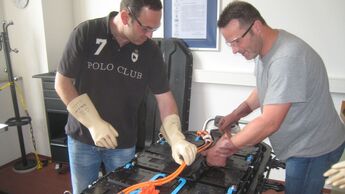 Akku des E-Autos defekt? Kein Problem. Mitsubishi zeigt, dass man einzelne Zellen tauschen kann.