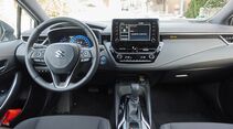 Suzuki muss den Flottenverbrauch senken, sonst drohen Strafzahlungen. So kurz könnte die Erklärung ausfallen, warum der Toyota Corolla mit Suzuki-Emblem vorfährt. Suzuki ist Weltmarktführer bei Motorrädern, in ganz Asien auch mit Autos sehr erfolgreich – die sind aber eher klein und antriebstechnisch simpel gestrickt. Für den hiesigen anspruchsvollen Markt braucht es mehr Technik, um größere Autos sparsam zu bekommen.