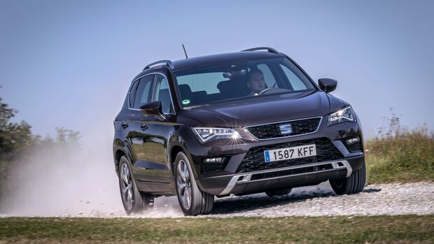 Der Ateca fühlt sich sehr agil an und ist in Sachen Connectivity ganz vorn. Doch die mäßige Sicherheitsausstattung und schwache Bremsen vereiteln den Sieg. Dass der Testwagen noch nicht auf WLTP umgestellt war, haben wir nicht berücksichtigt.