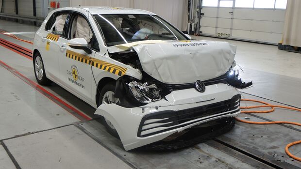 Verbesserungspotenzial haben die Tester vor allem im Bereich Fußgängerschutz beim ID.3 identifiziert. Wie viele andere Autos werden auch hier die A-Säulen als zu hart bemängelt. Weiterer Kritikpunkt: Das Notbremssystem bietet zwar eine Fußgängerkennung, die jedoch beim Abbiegen an einer Kreuzung querende Personen nicht erkennt. Deshalb schneidet der ID.3 beim Kapitel Fußgängerschutz mit insgesamt 71 Prozent schlechter als in den anderen Testbereichen ab. Das trifft auch auf den Golf 8 zu, der mit 76 % allerdings auch hier leicht besser benotet wurde.