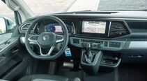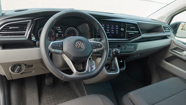 Die andere größere Neuerung hat ebenfalls mit Elektronik zu tun. VW Nutzfahrzeuge hat es geschafft, die aktuellste Infotainmentgeneration aus dem Konzernbaukasten in den Bus zu packen. Dafür bekommen Transporter- und Multivan-Varianten denselben Armaturenträger. Einige Zierblenden werten den Freizeitvan gegenüber dem Arbeitstier auf. Eigens für die Transporter-Varianten gibt es ein Radio ohne Touchscreen, aber mit Bluetooth, SD-Kartenleser und USB-Anschluss. Es ist künftig serienmäßig.