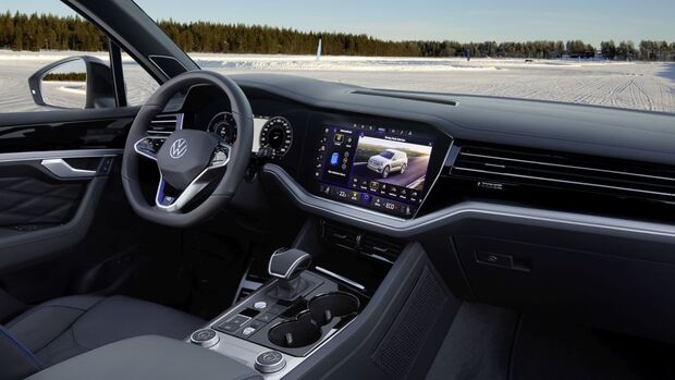 Konkret setzt VW auf die Kombination eines 3,0-Liter-V6-Benziners mit 340 PS und einem im Getriebetunnel der Achtgang-Automatik integrierten E-Motor mit 136 PS. Die Systemleistung wird mit 462 PS und 700 Newtonmeter Drehmoment angegeben. Damit soll der 2,5 Tonnen schwere Allradler den Sprint auf Tempo 100 in rund fünf Sekunden absolvieren und maximal 250 km/h erreichen. Im Heck des Touareg R steckt eine 14,1-kWh-Batterie, die rein elektrisches Fahren bis 48 Kilometer weit und bis 140 km/h erlaubt. Der Fahrer kann zwischen lokal emissionsfreier, hybridischer sowie einer den Batterieladestand erhaltenden Fahrweise wählen.