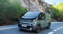 Letzteres kann durchaus als gelungen bezeichnet werden. Auf einer ersten Probefahrt überzeugte der nur 4,70 Meter lange Van (etwas kürzer als ein ID.Buzz) voll und ganz. Zur komfortablen Federung und der recht direkten Lenkung kommt die herrliche Ruhe im Innenraum. Kias Entwicklern war es wichtig, durch gezielte Dämmmaßnahmen (zum Beispiel Akustik-Glas) den Geräuschpegel auf ein sehr niedriges Niveau zu reduzieren.